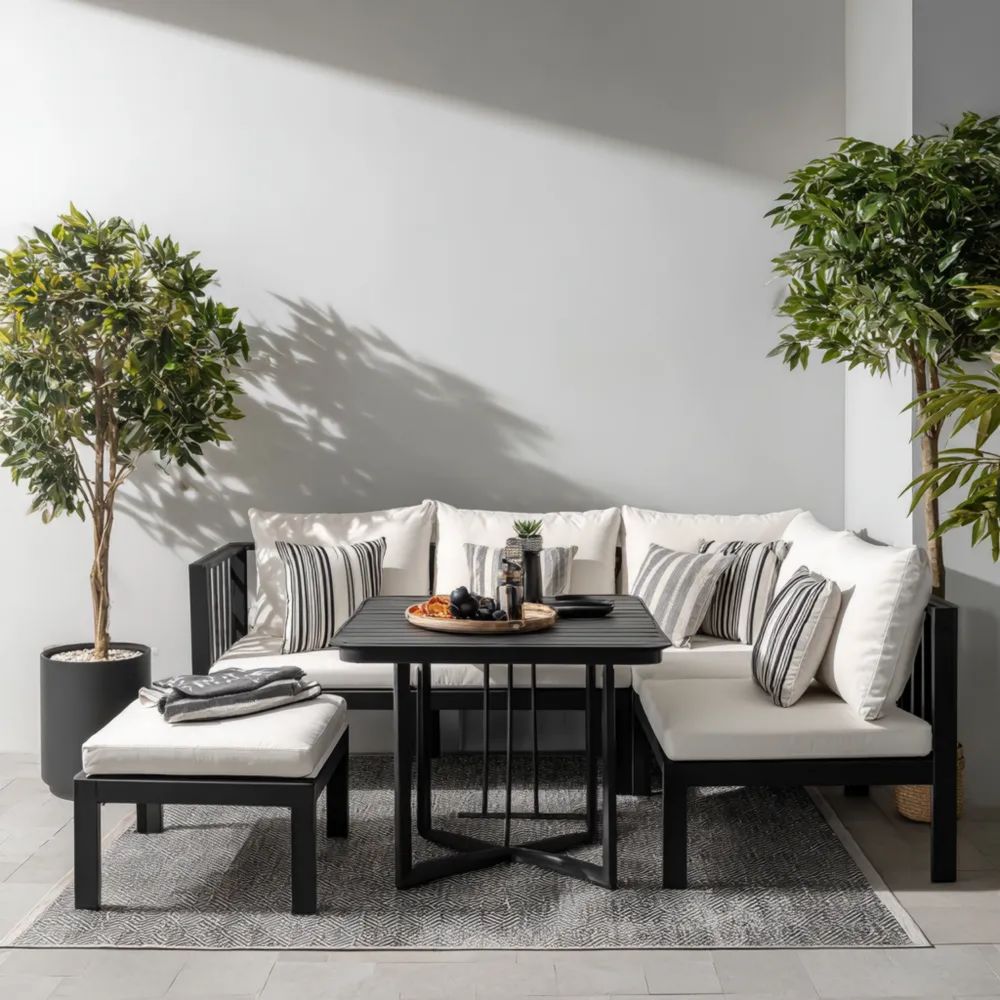 Garten-Sofaset Aluminium 150x80x75 cm – Schwarz – Modernes Design mit Weißen Kissen