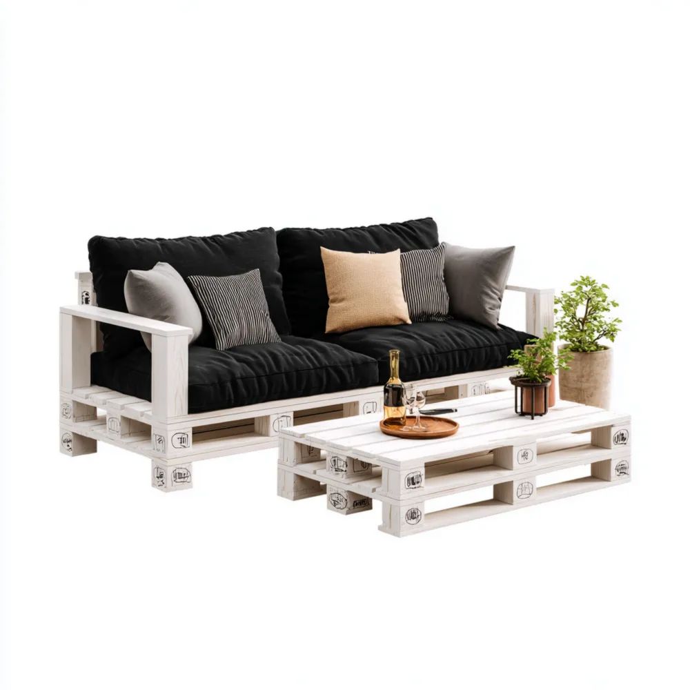Paletten-Sofaset Holz 200x75x65 cm – Schwarz – Industrieller Stil