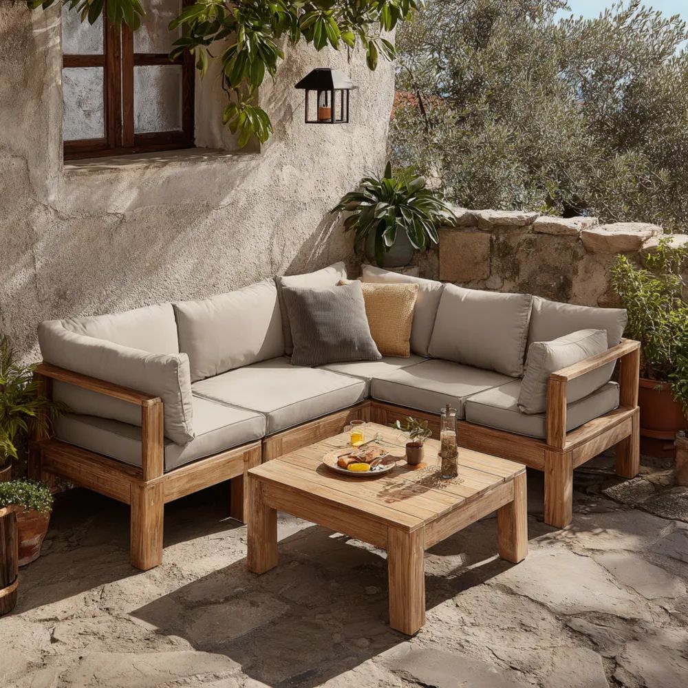 Garten-Sofaset Holzrahmen Polster 200x150x70 cm – Beige – Moderner Stil