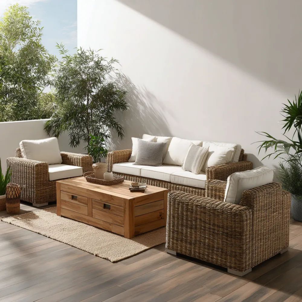 Garten-Sofaset Rattan 200x80x75 cm – Beige – Dreisitzer und Sessel im Modernen Design
