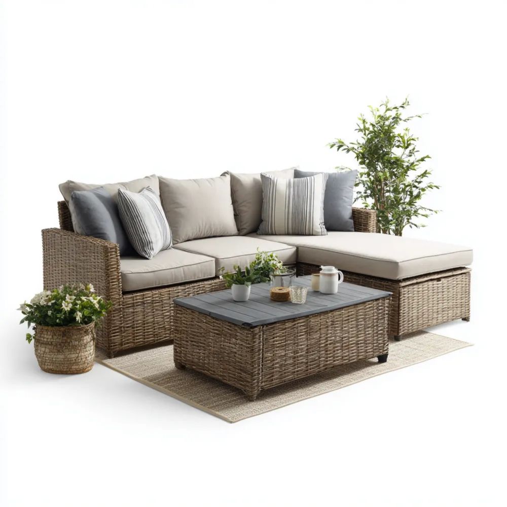 Garten-Sofaset Rattan 4-teilig 250x250x75 cm – Beige – Moderner Stil