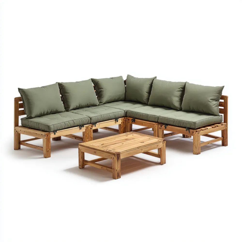 Gartensofa-Set Holzrahmen 250x75x65 cm – Olivgrün – Moderner Stil