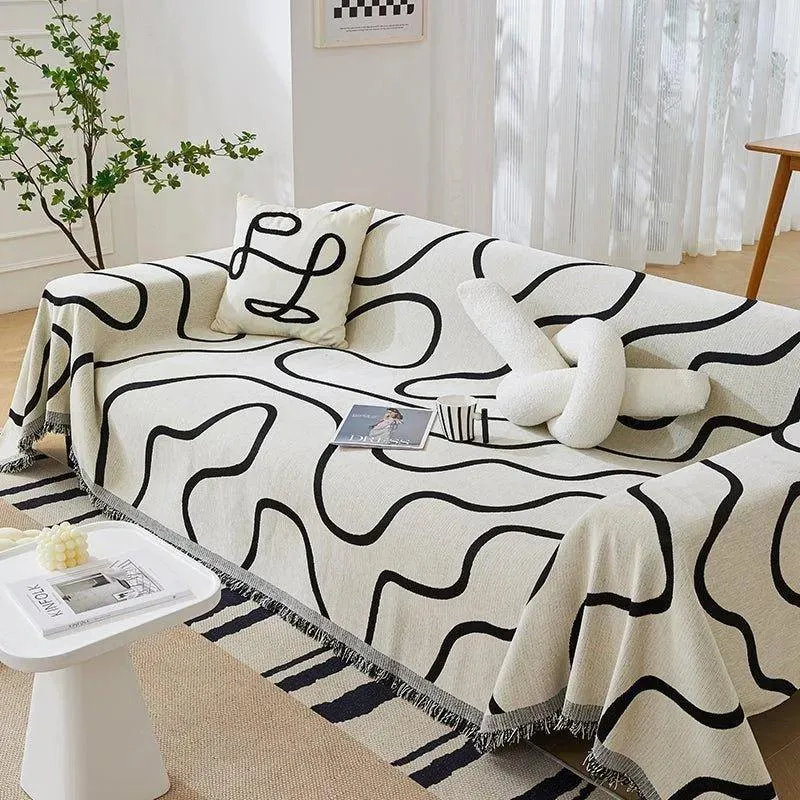 Chenille-Kuscheldecke mit Tassel im nordischen Jacquard-Stil, doppelseitig wendbar