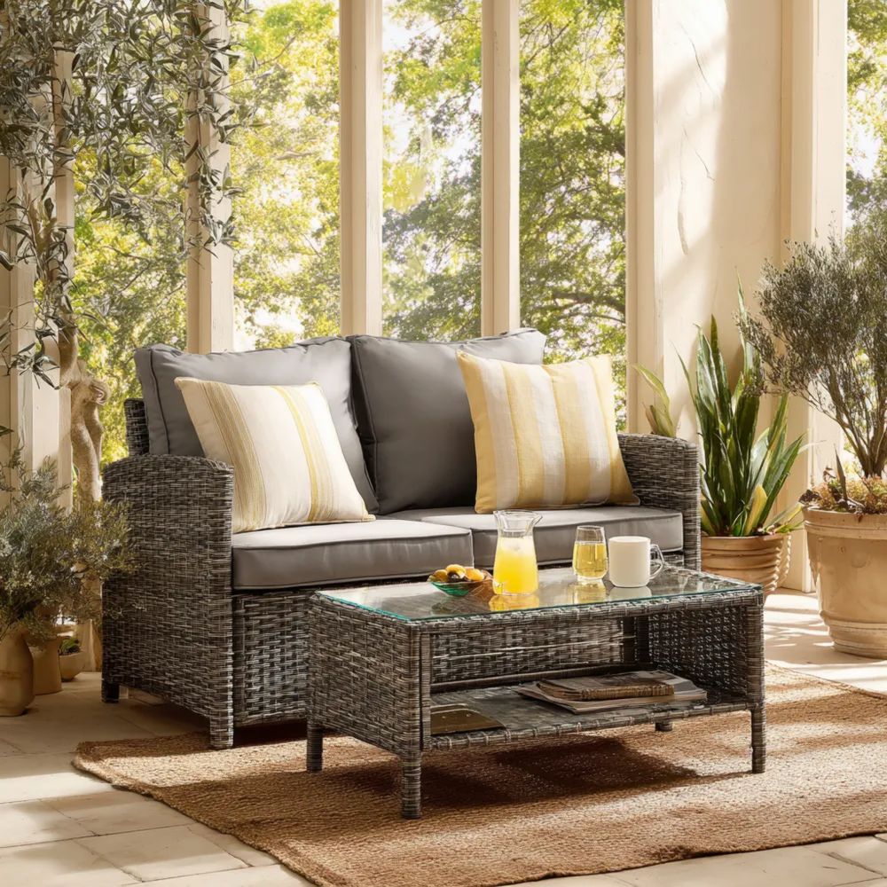 Garten Sofaset Rattan 125x60x80 cm – Grau – Modernes Design