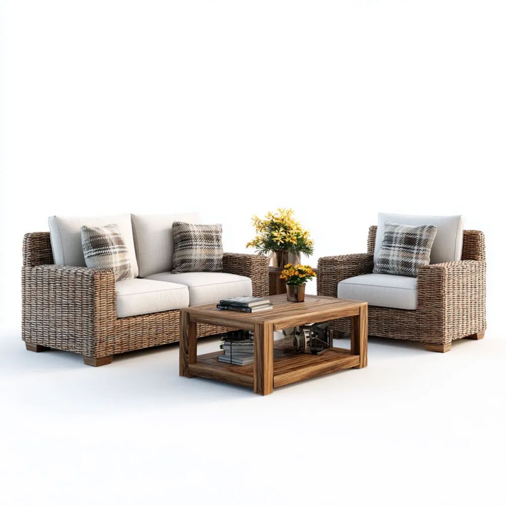 Garten-Sofaset aus Rattan 145x85x75 cm – Beige – Modernes Design