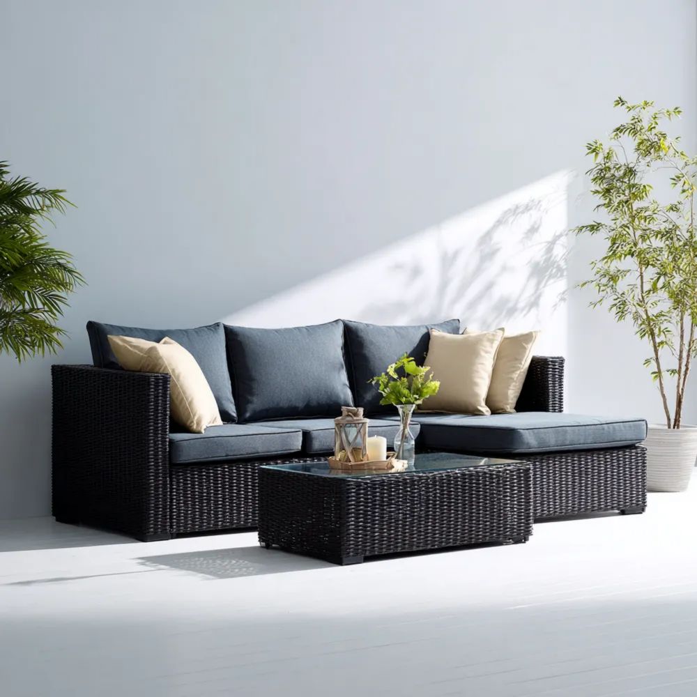 Garten-Sofaset Polyrattan 200x70x65 cm – Dunkelblau – Modernes Design