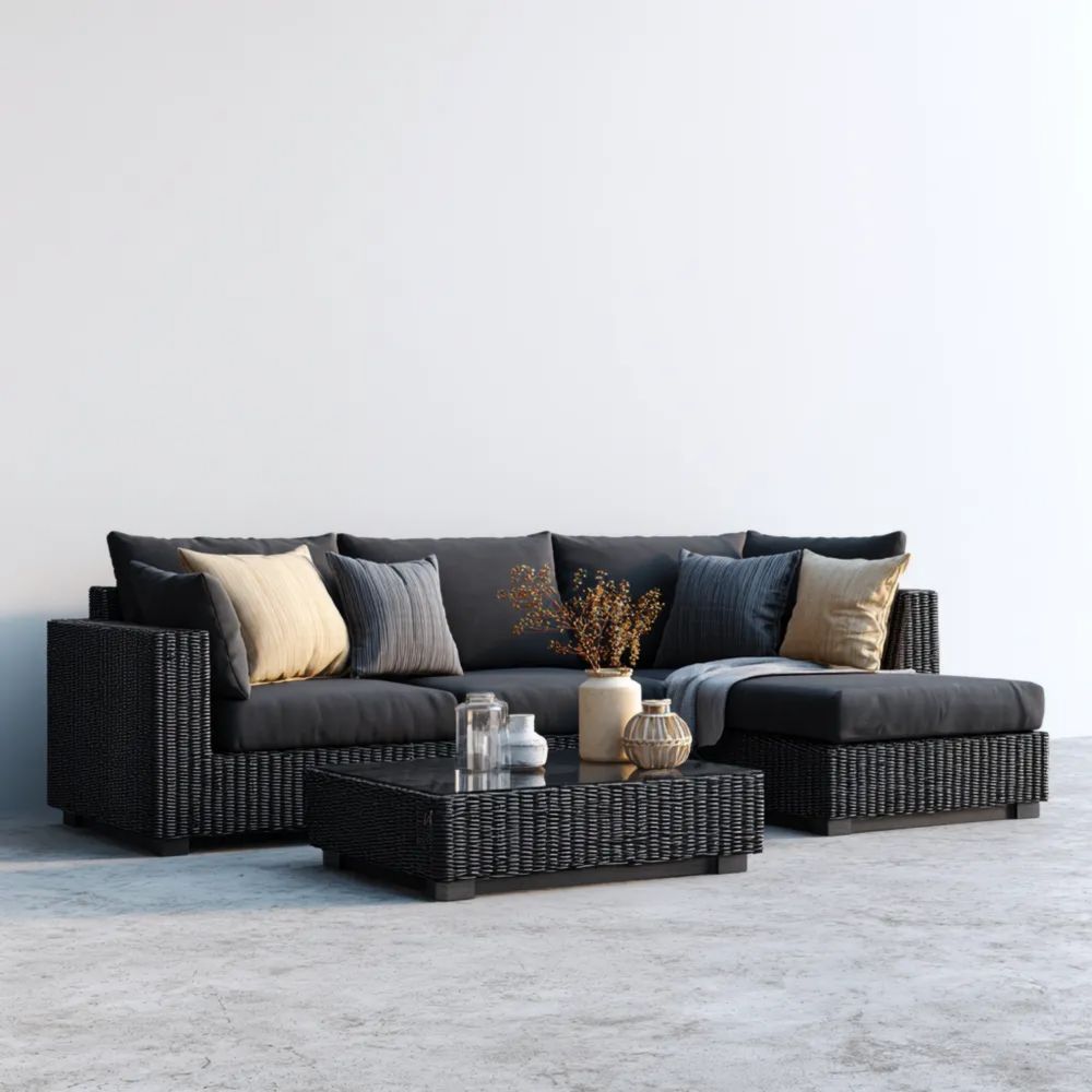Garten-Sofaset Polyrattan 220x150x68 cm – Schwarz – Moderne Lounge