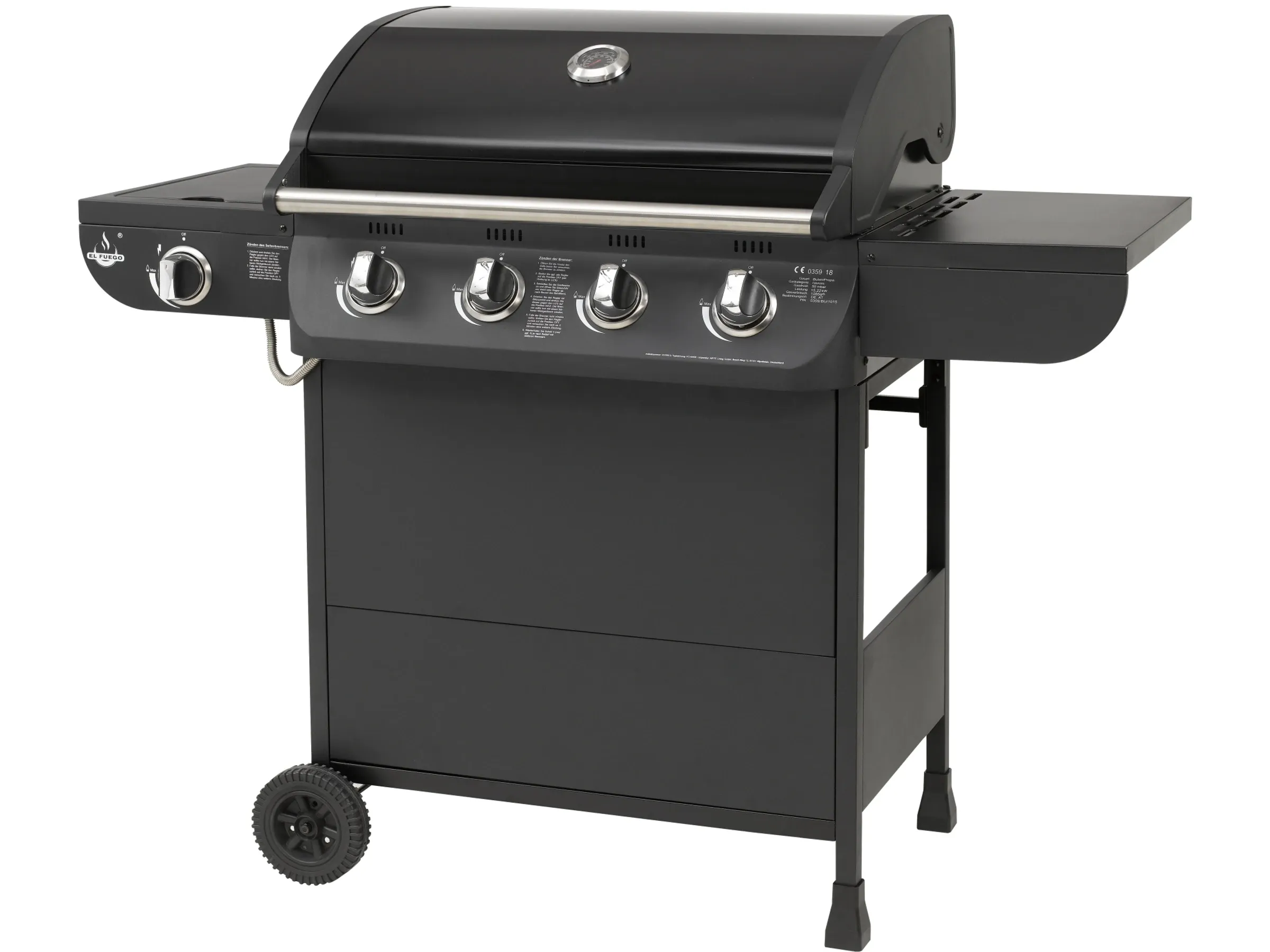 Gasgrill Columbus mit 4 Hauptbrennern und Seitenkocher - Schwarz