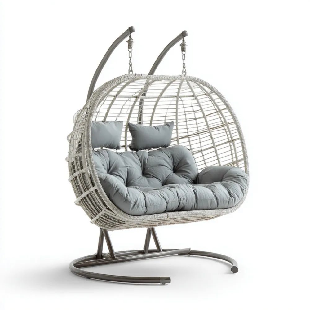 Hängesessel Rattan Doppelsitz 135x120x200 cm – Grau – Modernes Design