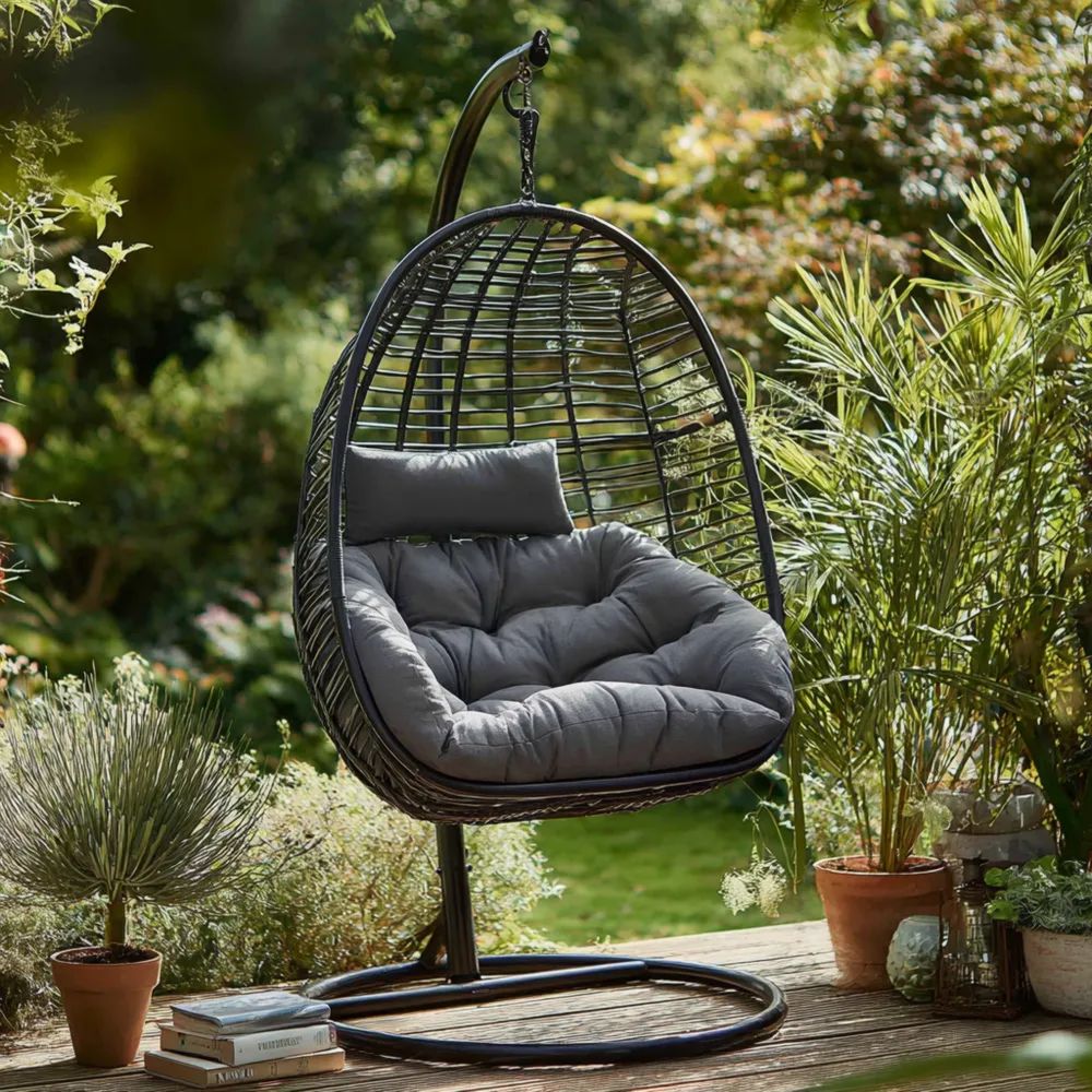 Hängesessel Rattan-Ei Design 95x95x195 cm Metallrahmen - Grau - Outdoor geeignet
