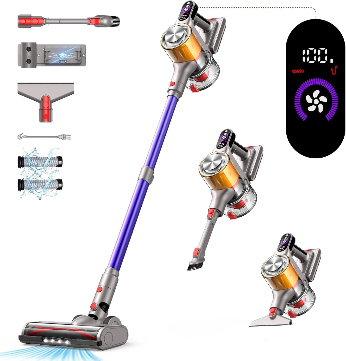 Kabelloser Staubsauger, 45000Pa/550W, 60 Min Laufzeit, Wandhalterung, Duftfunktion, 1.8L Behälter, LED-Display, Anti-Tangle-Bürste