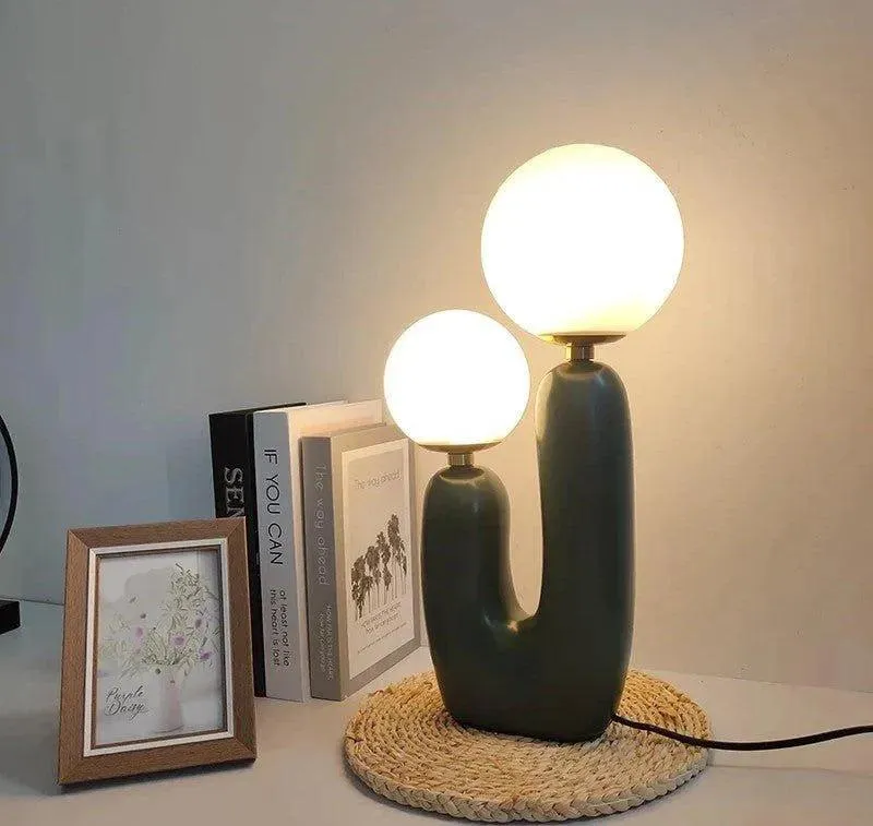 Moderne LED-Tischlampe mit doppelt mattierten Glaskugeln im nordischen Design