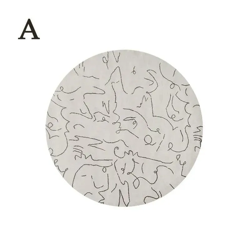 Nordisches minimalistisches Rundteppich in Schwarz | Dekorativer großer Plüschteppich